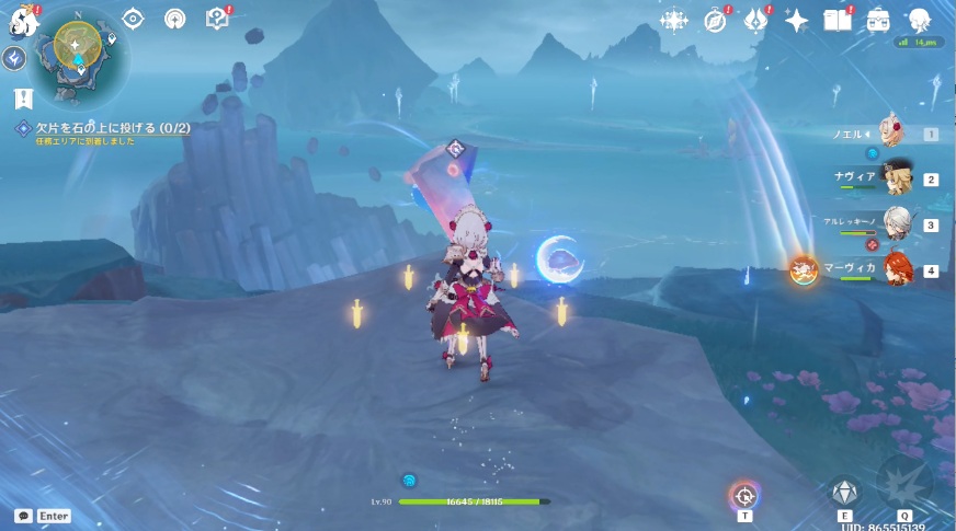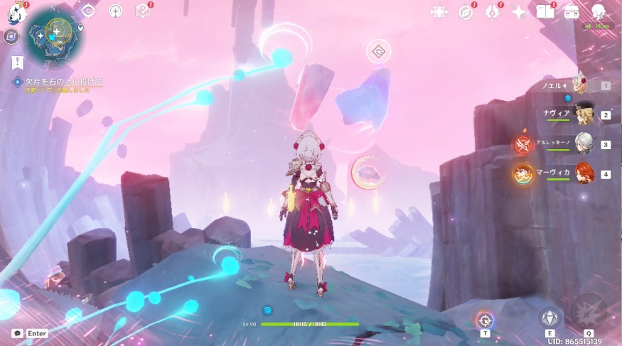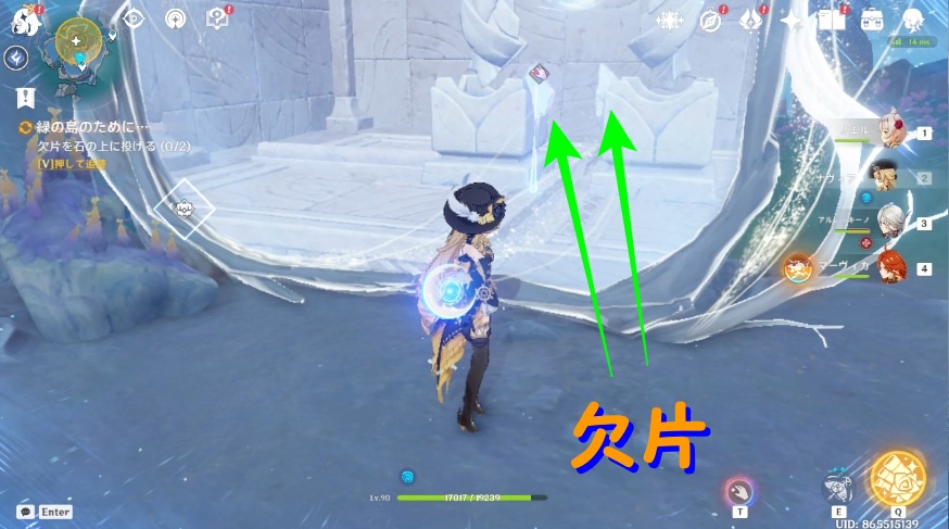 5.取った欠片を浮遊している岩に投げ付けます。欠片を2回投げればOKです。