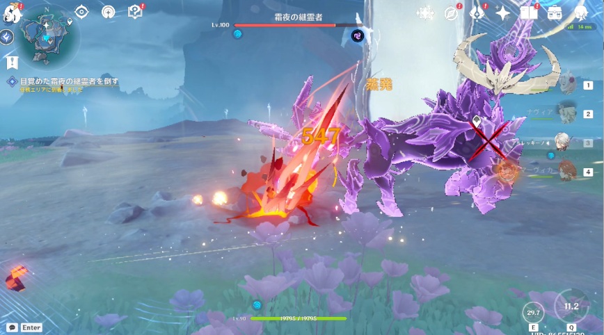 12.会話終了後、目覚めた霜夜の継霊者を倒します。霜夜の継霊者を倒した後は、月霊を3つ探します。