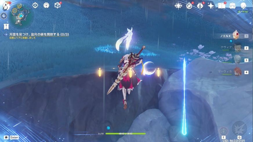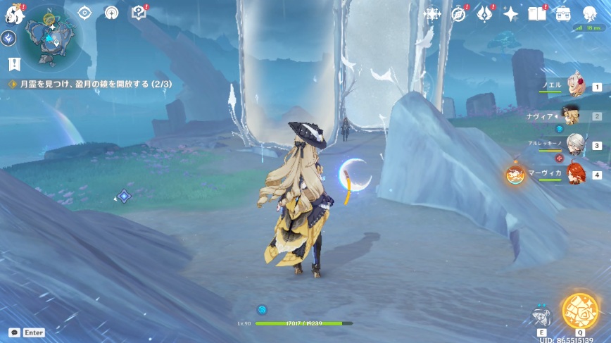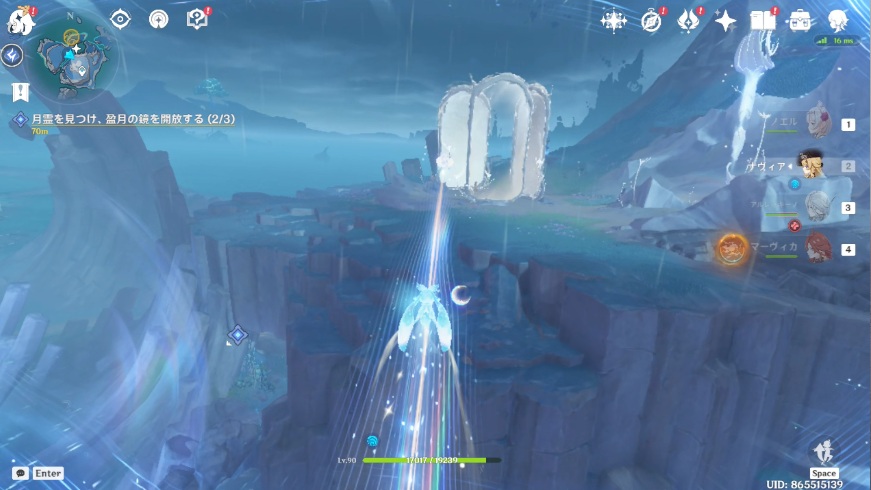 1.北エリアの月霊に近づくと、レールが現れるのでレールに乗って移動します。