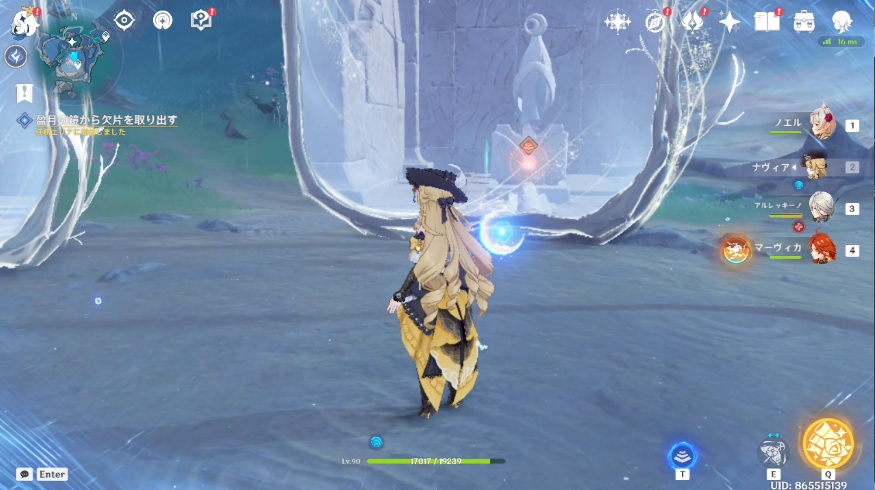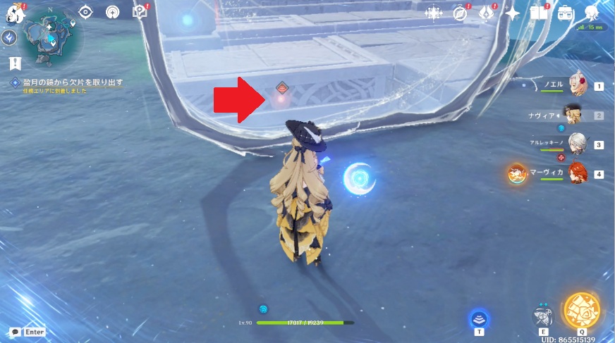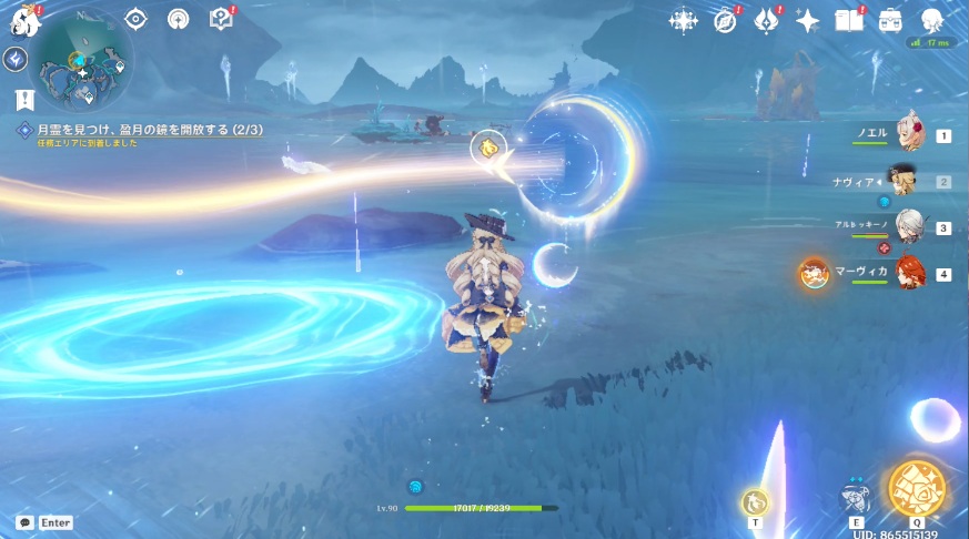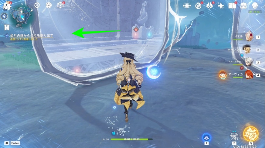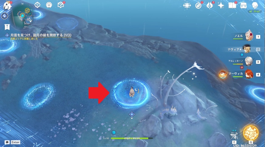 1.南側の月霊は南側黄色エリア中央付近にいるので、月霊に近づくとOKです。