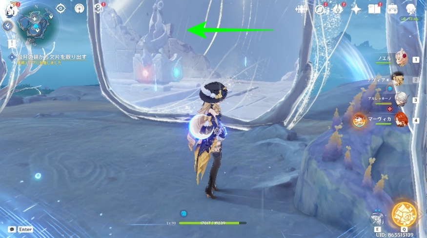 月霊を3体集めたら盈月の鏡から欠片を取り出します。