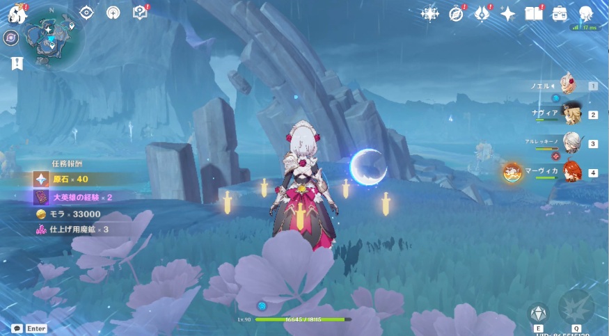緑の島のためにの任務完了報酬は、原石x40、大英雄の経験x2、モラx33000、仕上げ用魔鉱x3です。