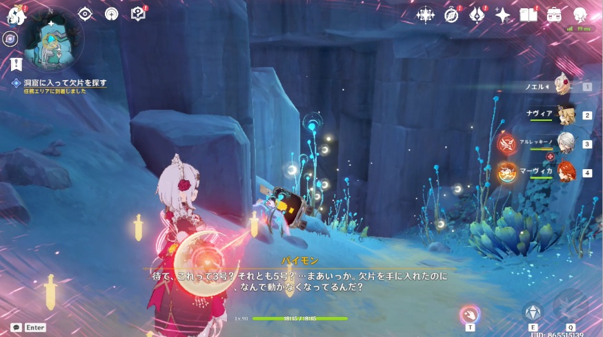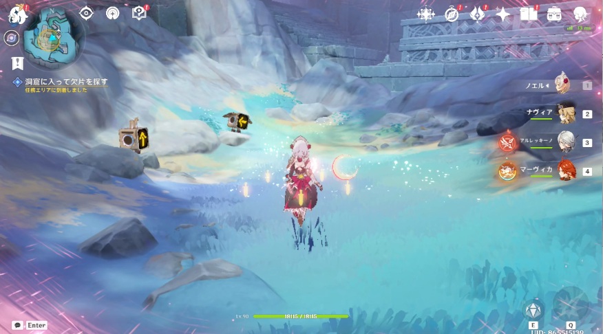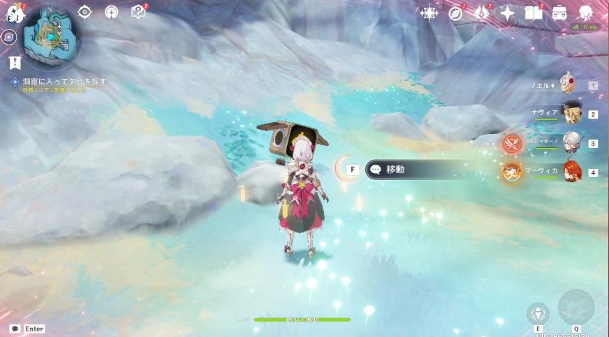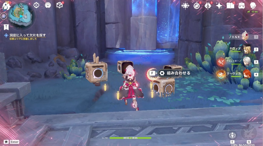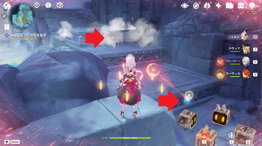 4.洞窟に戻り、再び欠片を探します。矢印が付いているロボットの近くに移動します。