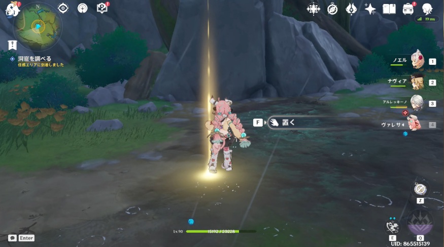 2.任務エリアの中央に光っている場所があるので、近づき「置く」を選択します。