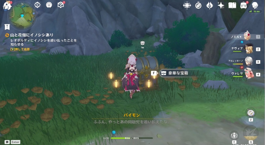 以上、原神(モンド)の世界任務・山と花畑にイノシシありの任務発生条件と発生場所、ギミック攻略方法の解説でした。