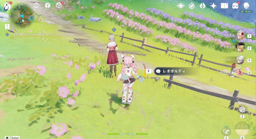 1.ミルハーヴェンのワープポイント北側、花畑に立っているレオポルディに話しかけます。
