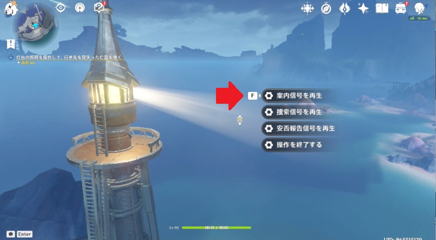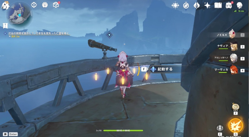 2.会話終了後、マーカーポイントの灯台に登り双眼鏡に近づいて「起動する」を選択します。