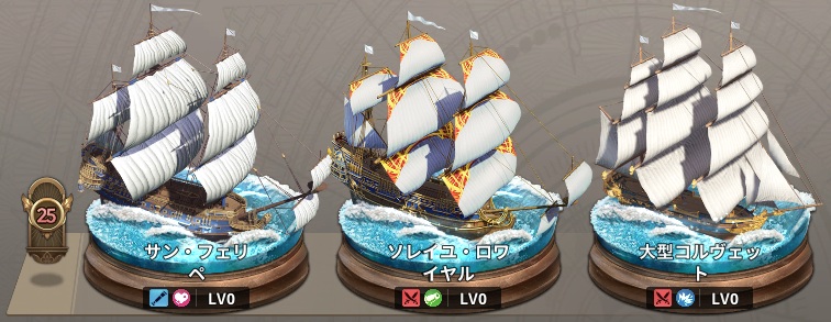 ●船 LV25 サン・フェリペ、ソレイユ・ロワイヤル、大型コルヴェット